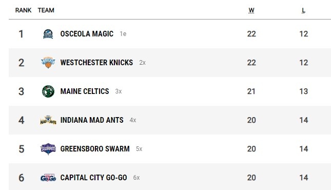 G聯(lián)賽常規(guī)賽東西部前六晉級季后賽,東西部第1、第2名直接晉級分區(qū)半決賽。常規(guī)賽排名東西部前六的球隊如下: