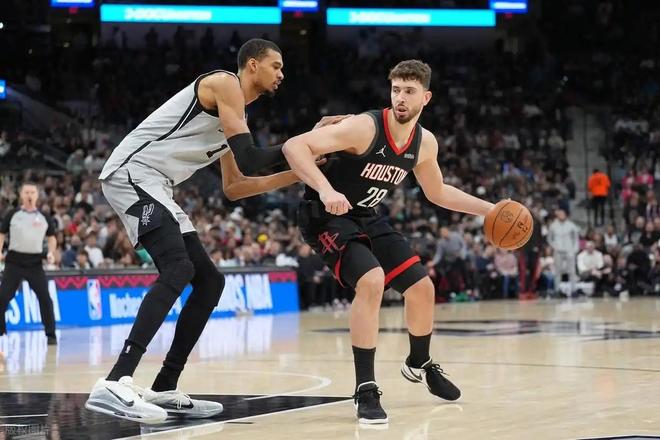 次節(jié)成為比賽的轉(zhuǎn)折點(diǎn),馬刺徹底開(kāi)啟進(jìn)攻模式,哈珀、凱爾登、卡斯?fàn)柸齻€(gè)后衛(wèi),在不足5分鐘的時(shí)間里轟出20-10的進(jìn)攻狂潮,直接將比分拉開(kāi)。哈珀上半場(chǎng)狀態(tài)火熱,砍下全隊(duì)最高的17分,而文班亞馬則在攻防兩端雙線發(fā)力,不僅用扣籃和中距離得分持續(xù)施壓,更用蓋帽筑牢防守屏障。半場(chǎng)戰(zhàn)罷,馬刺已有4人得分上雙,帶著12分的領(lǐng)先優(yōu)勢(shì)進(jìn)入下半場(chǎng),火箭的防守漏洞逐漸暴露,失分隱患開(kāi)始顯現(xiàn)。