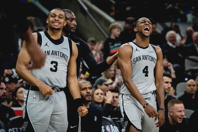 最近16場比賽,馬刺15勝1負!此役馬刺四人得分20+,全隊三分40中21!文班亞馬29分8板2斷4帽、卡斯爾23分3板5助、??怂?0分10助、凱爾登20分2助、哈珀19分6助?;鸺@邊,阿門23分7板6助、杜蘭特23分5板4助2帽。