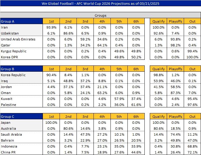最新國足出線概率:直通美加墨1.4%,晉級下一輪26.4%,出局72.1%